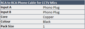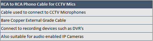 10 Metre RCA to RCA Phono Cable for CCTV Mics