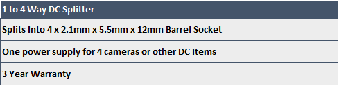 1 to 4 Way DC Power Splitter for CCTV Cameras