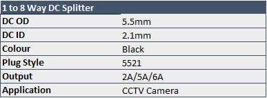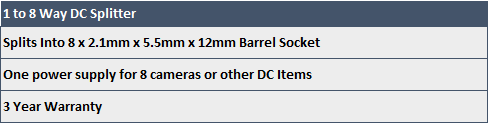 1 to 8 Way DC Power Splitter for CCTV Cameras