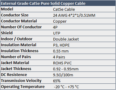 10 Metre CAT5E Pure Solid Copper External Grade CCTV cable