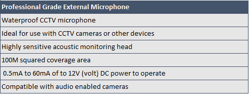 External Microphone for Analog & IP CCTV Cameras