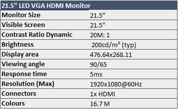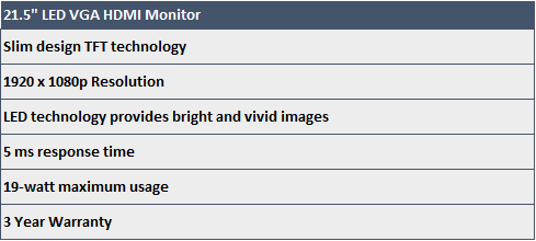 21.5" LED Widescreen VGA HDMI 1080p Monitor